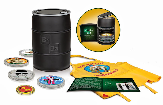 The box set also contains a Los Pollos Hermanos apron and a collectible booklet, as well as a commemorative Breaking Bad challenge coin designed and created by Vince Gilligan exclusively for this set as a token of appreciation to fans for making the Breaking Bad journey.