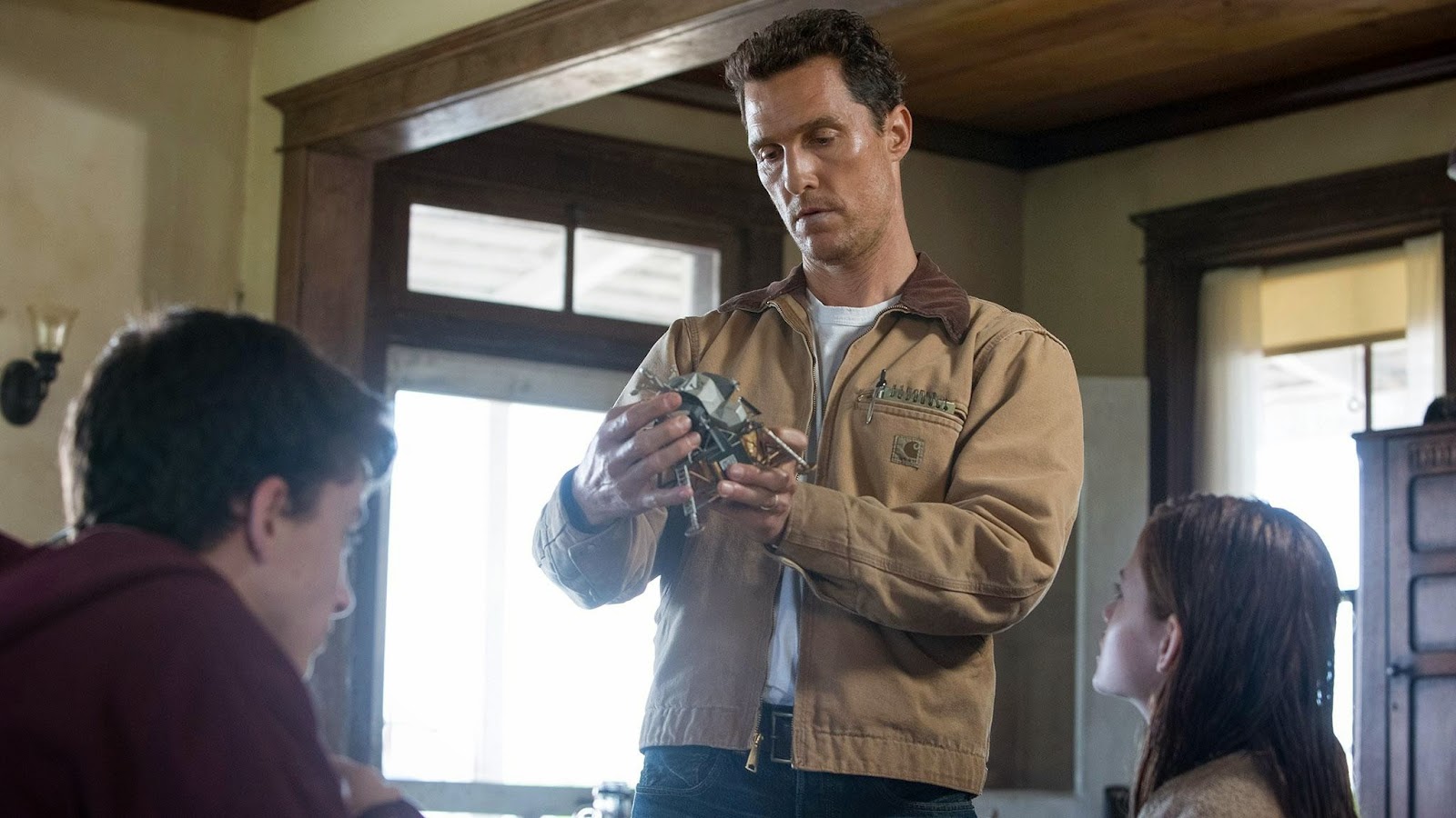 Dialling down his Texan swagger but upping his considerable charm to help him spout cod trite bon-mots over how we used to look to the stars but now stare down at the ground, McConaughey's Coop and his relationship with his daughter Murph (played in early years by MacKenzie Foy and in latter by Jessica Chastain) prove to be the much-needed and occasionally absent emotional centre of this extended space-operatic meditation on love across the dimensions.