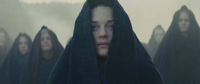 Thankfully, Cotillard's tortured siloloquy as she wrestles with that damned spot is more intimate and devastating, her ghostly white visage draped in the dawning horror of what she and her husband have executed. If anything, Lady MacBeth appears more as a well-rounded character than the text, a less black and white nag who picks at her husband to vault her dizzying ambitions of power.