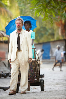 Laurie, replete in crumpled white suit, brings a low-key nuanced presence and haunting subtle sadness to the last remaining white man on the island, trying to inspire the children and distract them from the horrors knocking at their very doorstep. There's a distracted melancholy to his performance which is only lifted when he brings some comic overtones to the acting out of Dickens' world.